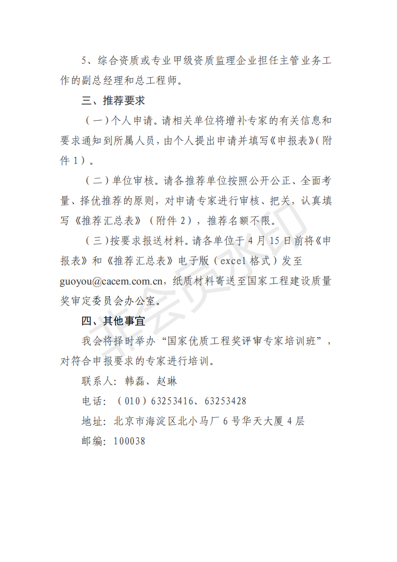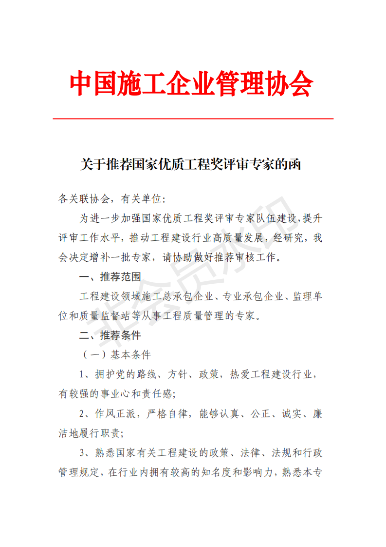 轉發(fā)《關于推薦國家優(yōu)質工程獎評審專家的函》的通知
