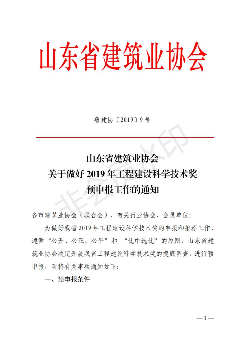 山東省建筑業(yè)協(xié)會關(guān)于做好 2019年工程建設科學技術(shù)獎預申報工作的通知