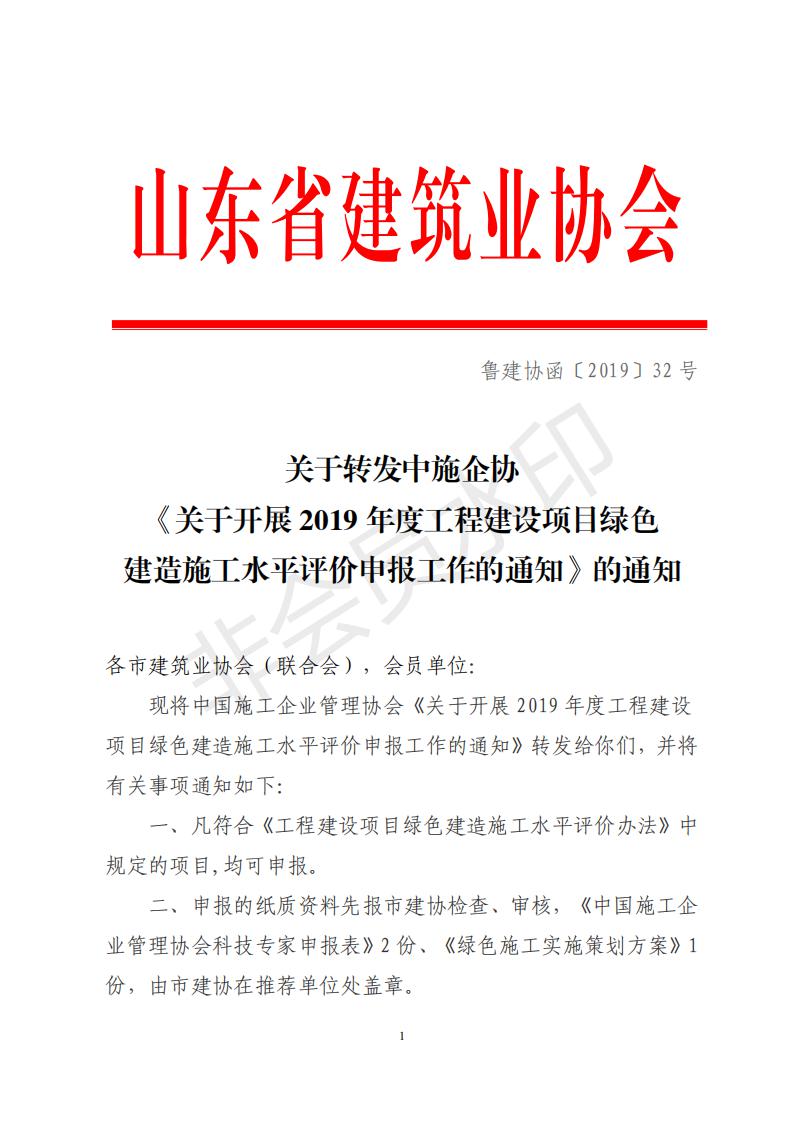 關(guān)于轉(zhuǎn)發(fā)中施企協(xié)《關(guān)于開展2019年度工 程建設(shè)項目綠色建造施工水平評價申報工作的通知》的通知