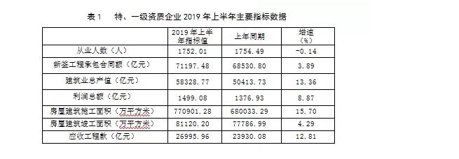 三、2019年上半年建筑業(yè)特、一級資質(zhì)企業(yè)基本情況分析