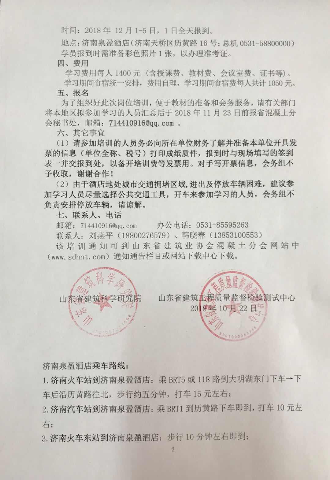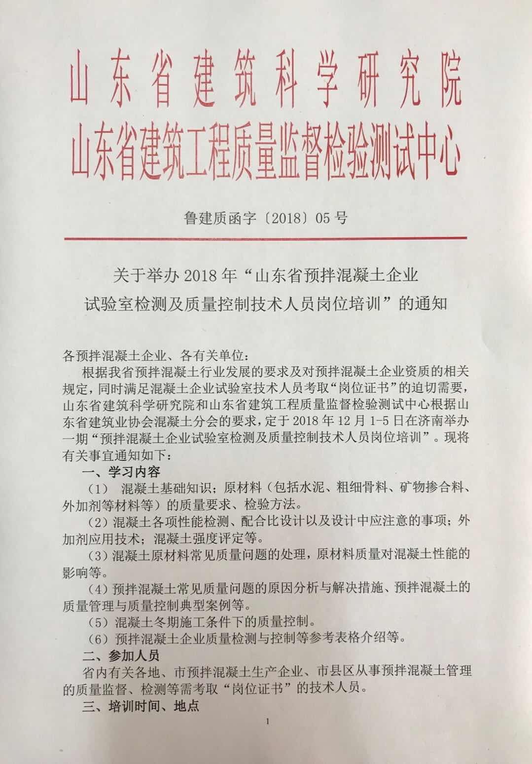 關(guān)于舉辦2018年“山東省預(yù)拌混凝土企業(yè)試驗(yàn)室檢測及質(zhì)量控制技術(shù)人員崗位培訓(xùn)”的通知