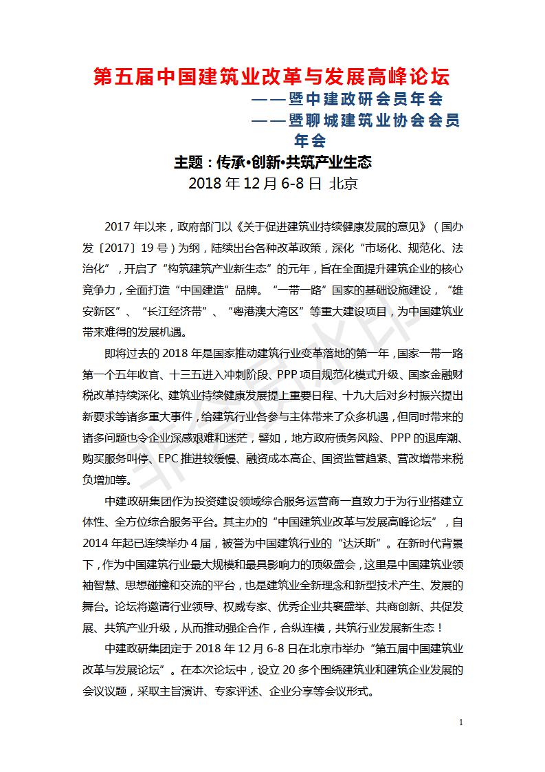 第五屆中國(guó)建筑業(yè)改革與發(fā)展高峰論壇